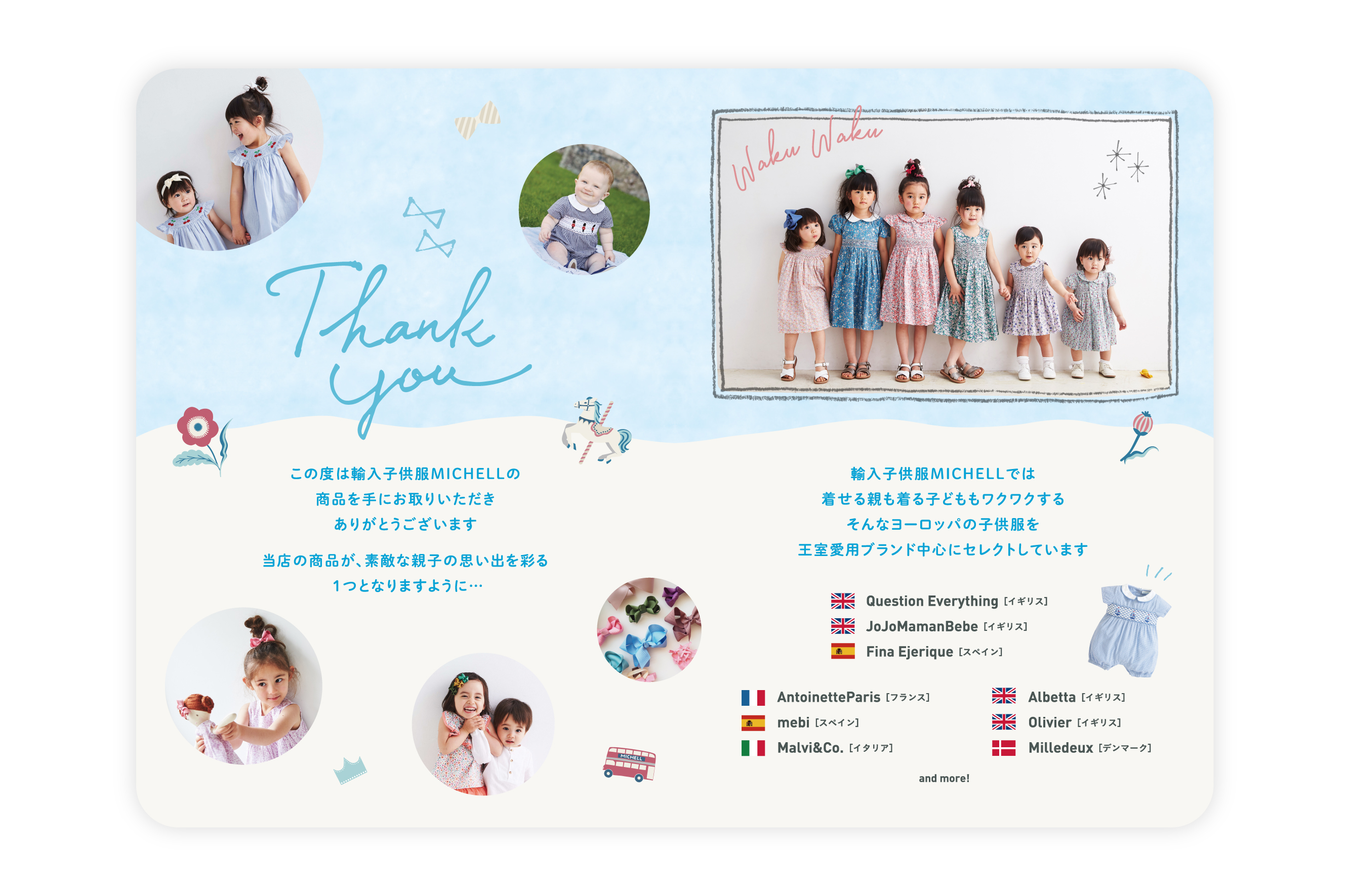 輸入子供服MICHELL様のThanksレターのデザイン・制作を担当しました。